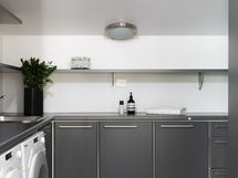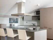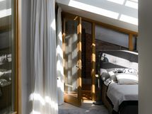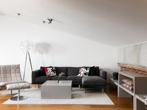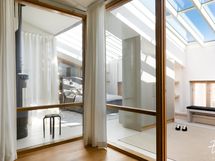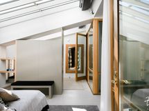 Kokonaisuuden kruunaa laadukkaat materiaalit sekä osittainen lasikatto, jonka ansiosta huoneisto kylpee valossa.