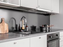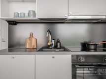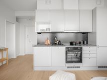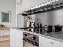 Keittiön varusteet: Jääkaappipakastin, erillisuuni, astianpesukone, liesituuletin ja liesi. Liesi: Keraaminen liesi.