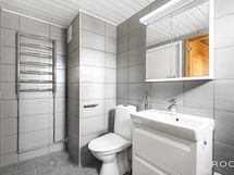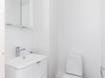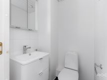 - Pesutilojen varusteet: WC-istuin, suihku, suihkuseinä, peilikaappi, pesuallas, allaskaappi, bidee-suihku ja tuuletusikkuna, pyyhepatteri. Pesutilojen kuvaus: Taloyhtiön kaikki märkätilat on peruskorjattu vuosien 2018-2020 aikana. Asunnon kylpyhuone on remontoitu v. 2019. Erillisten WC:n lukumäärä: 1. Erillisen WC:n varusteet: WC-istuin, peilikaappi, pesuallas, allaskaappi ja bidee-suihku. Erillisen WC:n kuvaus: Erillinen wc on remontoitu v. 2011. Lattia tumman ruskeaa laattaa, välitilassa valkoinen kaakeli.