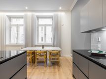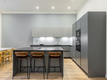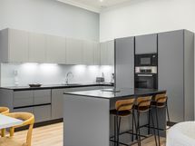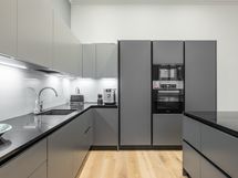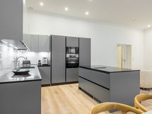 - Keittiön varusteet: Jääkaappi, liesi, liesituuletin, astianpesukone, mikroaaltouuni ja jääkaappipakastin. Liesi: Induktioliesi. Työtason materiaali: Kivi. Alta Cucina keittiökaapistot ja Miele kodinkoneet.