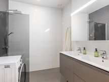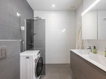 - Pesutilojen varusteet: WC-istuin, suihku, pesukoneliitäntä, lattialämmitys, peilikaappi, pesuallas, allaskaappi ja suihkuseinä. Erillisten WC:n lukumäärä: 1. Erillisen WC:n varusteet: WC-istuin, pesuallas, peilikaappi, lattialämmitys ja allaskaappi.