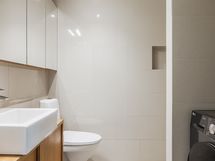 - Pesutilojen kuvaus: Varusteet: WC-istuin, suihku, pesukoneliitäntä, peilikaappi, allaskaappi, pesuallas, bidee-suihku ja lattialämmitys