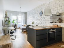 - Varusteet: Erillisuuni (kalusteuuni), astianpesukone, liesi (induktio), jääkaappi, liesituuletin ja