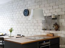 Seinämateriaalit: Maali ja tiili ja välitilassa seinälevy