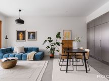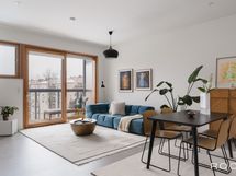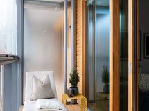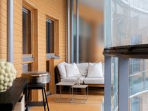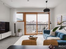 Valoisa olohuone, etelän ja etelä–lännen suuntaan avautuvat ikkunat sekä suuri parveke rauhalliselle sisäpihalle tekevät arjesta poikkeuksellisen viihtyisää. Moderni sauna, vaaleasävyinen kylpyhuone, erillinen wc ja vaatehuone viimeistelevät toimivan ja korkeatasoisen kokonaisuuden.