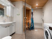 varusteina wc-istuin, allastaso, peili, suihku, pyykinpesukoneliitäntä.
