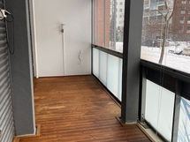 - Koko huoneisto levyinen lasitettu terassi. Suunta kaakko.