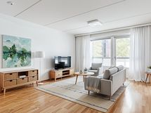 - Keittiön varusteet: Jääkaappipakastin (uusittu v 2021), liesituuletin ja liesi. Liesi: Keraaminen liesi. Työtason materiaali: Laminaatti.