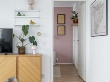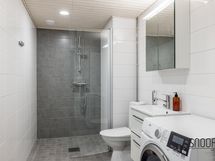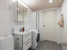 - Pesutilojen varusteet: WC-istuin, suihku, suihkuseinä, pesukoneliitäntä, lattialämmitys, peilikaappi, peili, pesuallas, allaskaappi ja bidee-suihku.