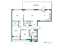 - 4h, avokeittiö, kph/wc/sauna, wc/khh, vh, 2 terassiparveketta