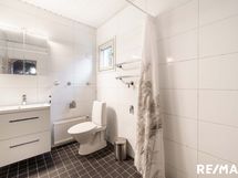 - Pesutilojen varusteet: WC-istuin, peilikaappi, pesuallas, allaskaappi, pesukoneliitäntä ja bidee-suihku. Erillisten WC:n lukumäärä: 1. Erillisen WC:n varusteet: WC-istuin, peilikaappi, pesuallas, allaskaappi, bidee-suihku ja pesukoneliitäntä.