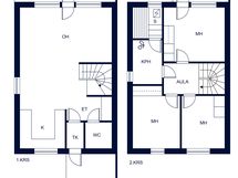 - Kylmä ulkovarasto. Lisätietoja säilytystiloista: Kylmä ulkovarasto asunnon etupihalla.