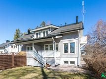 - Asuinpinta-alan peruste: Toimeksiantajan ilmoittama. Em. pinta-ala on huoneiston arvioitu kokonaisala sisäseinistä mitattuna sisältäen huoneiston 3 kerrosta, sekä lämmin varasto n. 4 m² ja kylmävarasto n. 9 m². Huoneistoala kokonaisuudessaan vähennettynä porrastila (-3,5 m²) on 120,5 m². Huoneiston viralliseen asuinpinta-alaan lasketaan 98 m², joka käsittää 1. ja 2. kerroksen. Kellarikerroksen pinta-alaan 26 m², jossa takkahuone, kph, s ,wc ja aula, ei lasketa viralliseen asuinpinta-alaan. (Koko paritalorakennuksen kokonaispinta-ala on 372 m².)