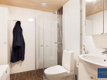 - Pesutilojen varusteet: WC-istuin, suihku, suihkuseinä, bidee-suihku, peilikaappi, allaskaappi, pesuallas, lattialämmitys (sähkö) ja säilytyskaappi.