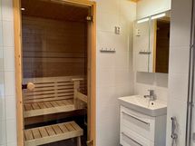- Pesutilojen varusteet: WC-istuin, suihku, suihkuseinä, pesukoneliitäntä, peilikaappi, lattialämmitys, bidee-suihku ja allaskaappi.