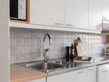 - Jääkaappi/pakastin, astianpesukone, keraaminen liesi, liesituuletin/ aktiivihiilisuodatin, uuni, kiinteä valaistus, kiinteät kaapistot.