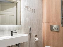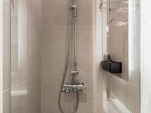 - KPH makuuhuoneen yhteydessä: sadesuihku, Undran Highline panel and cassette viemärikaivo, taitto-ovi, taustavalaistu peili, seinäkaappi, allas Desing tuote, Nichba bath 40 hylly, seinä-wc IDO+pide, lattialämmitys. KPH eteisen yhteydessä: sadesuihku, Undran Highline panel and cassette viemärikaivo, taitto-ovi, peilikaappi, allas ja allaslaatikostot (Temal), seinäkaappi, Nichba bath 40 hylly, seinä-wc IDO+pide, pyyhekuivain, lattialämmitys. Lisäksi taitto-oven takana pesutorni