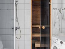 - Varusteet: sähkökiuas. Lattiamateriaali: laattalattia