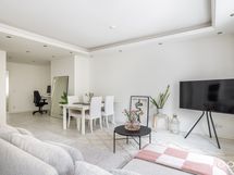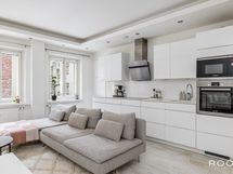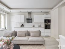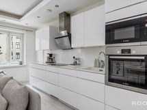 - Keittiön varusteet: Jääkaappipakastin, uuni, liesi, liesituuletin, mikroaaltouuni ja astianpesukone. Liesi: Keraaminen liesi. Työtason materiaali: Kivi.