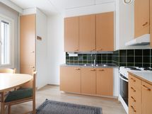 - Keittiön varusteet: Jääkaappipakastin (n. 1v vanha) ja liesituuletin (Aktiivihiilisuodatin). Liesi: Sähköhella. Työtason materiaali: Laminaatti. Jääkappi/pakastin on uudempi, muiden kodinkoneiden, liesi ja liesituuletin, toimivuudesta ei ole varmuutta.