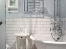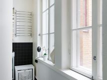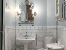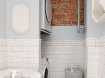 Molemmissa kylpyhuoneissa liitäntä pesukoneelle.