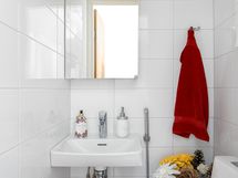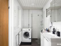 - Pesutilojen kuvaus: Kylpyhuoneeseen on kulku päämakuuhuoneesta sekä pukeutumishuoneesta. Kylpyhuoneessa on ikkuna. Varustus: wc-istuin, suihku, suihkuseinä, pesukone, pesukoneliitäntä, peilikaappi, allas, lattialämmitys. Erillisen WC:n kuvaus: Erillinen wc eteiskäytävän päässä. Varustus: wc-istuin, allas.