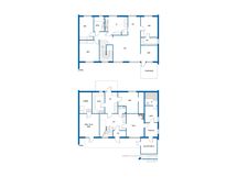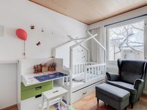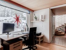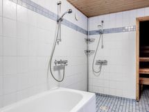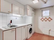 - Pesutilojen kuvaus: Yläkerrassa kylpyhuone, alakerrassa saunaosasto, erillinen wc, kodinhoitohuone. Erillisten WC:n lukumäärä: 1.