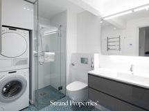 - Pesutilojen kuvaus: Seinä-wc-istuin, bideesuihku, allas, allaskaapisto, suihku, suihkuseinä, peili, pyyhekuivain, pesukoneliitäntä, pesukone, kuivausrumpu, kiinteät valaisimet, lattialämmitys (sähkö).