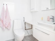 - Pesutilojen varusteet: WC-istuin, suihku, lattialämmitys ja pesukoneliitäntä. Pesutilojen kuvaus: Tilava lähes uuden veroinen kylpyhuone, jonka lisäksi erillinen wc. Erillisen WC:n varusteet: WC-istuin ja peilikaappi. Erillisen WC:n kuvaus: Tilava erillinen wc eteisen yhteydessä.