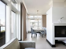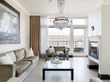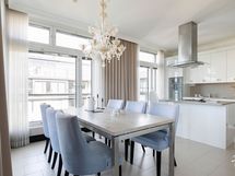 - Scavolinin saarekkeellinen keittiö, Mielen kodinkoneet: jääkaappi, pakastin, induktioliesi integroidulla liesituulettimella, uuni, mikroaaltouuni ja astianpesukone.