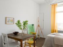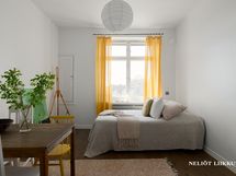 - Varustus: suihkuseinä, pesukoneliitäntä, lattialämmitys, wc-istuin, suihku, peilikaappi, kylpyhuonekaapisto.