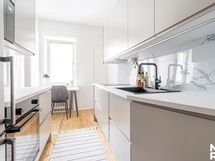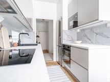 - Liesi: keraaminen. Työtasot: puu. Kylmäsäilytys: jääkaappi/pakastin. Varustus: liesituuletin, astianpesukone. Vaalea vuonna 2026 remontoitu trendikäs keittiö, jossa tilaa pienelle ruokailuryhmälle.