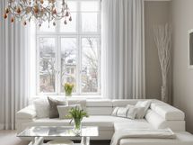 Muuta kauppaan kuuluvaa: Rullaverhot ja verhotangot Kauppaan ei kuulu: Mittatilaustyönä teetetyt verhot (keittiö & olohuone)