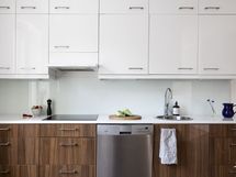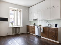 - Varustus: jääkaappi/pakastin (LG, side by side), integroitu uuni (Gram), induktioliesi, astianpesukone (AEG), liesituuletin aktiivihiilisuodattimella, kiinteät valaisimet.