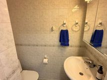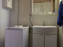- Suihku, Suihkuseinä, Pesukone, Pesukonevalmius, Peilikaappi, Allaskaappi, Rättipatteri, Laattaseinä, Laattalattia, Lattialämmitys