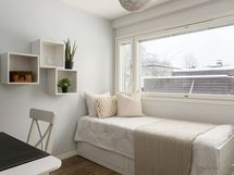 Makuuhuoneet ovat rauhallisia ja hyvän kokoisia, tarjoten tilaa sekä levolle että säilytykselle. Kylpyhuone ja sauna on remontoitu modernilla otteella. Saunassa on myös infrapunalämmittimet ja pesutilat ovat ajattomat ja toimivat. Kokonaisuus huokuu laatua ja huolenpitoa.
