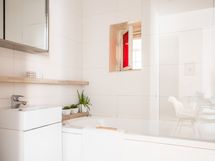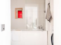 - Pesutilojen varusteet: Poreamme, suihku, suihkuseinä, wc-istuin, pesukoneliitäntä ja kiinteät valaisimet.