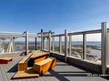 Luksusta asuntoon tarjoaa laadukkaat Mielen kodinkoneet, normaalia korkeampi huonekorkeus (n. 2,9m), Gardinin sähköverhot, Amazon Echo valaistuksen ohjausjärjestelmä sekä mikä parasta - ikkunoista avautuvat upeat ja kauaskantoiset taulumaiset 180 asteen maisemat - hyvällä säällä asunnolta näkyy Viroon asti.