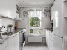 - Keittiön varusteet: Jääkaappipakastin, uuni, liesi ja astianpesukone. Liesi: Keraaminen liesi. Työtason materiaali: Laminaatti.