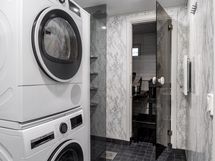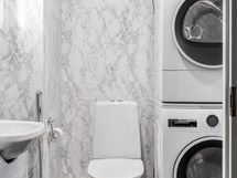 - Pesutilojen varusteet: WC-istuin, suihku, suihkuseinä, pesukoneliitäntä, lattialämmitys, bidee-suihku, peilikaappi, allaskaappi ja pesuallas. Erillisten WC:n lukumäärä: 1. Erillisen WC:n varusteet: WC-istuin, peili, pesuallas, allaskaappi ja bidee-suihku.