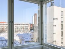- Näkymät kolmeen ilmansuuntaan, olohuone ja parveke noin lounaaseen korttelipihalle, makuuhuoneet ja sauna noin koilliseen naapuriyhtiön korttelipihalle, keittiö noin koilliseen yli Jaalarannan sekä noin luoteeseen Ruoholahdentorille ja -kanavalle