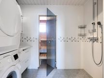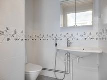 - Pesutilojen varusteet: Suihku, suihkuseinä, allaskaappi, lattialämmitys, peilikaappi, kuivausrumpu, pesukone ja pesukoneliitäntä. Pesutilojen kuvaus: Kylpyhuone remontoitu vuonna 2019. Erillisten WC:n lukumäärä: 1. Erillisen WC:n varusteet: Peilikaappi, bidee-suihku ja wc-istuin. Erillisen WC:n kuvaus: Erillinen wc remontoitu vuonna 2019.