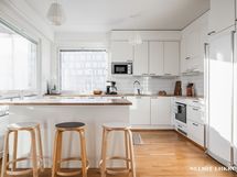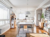 Asunnon selkeä ja käytännöllinen pohjaratkaisu tekee sisustamisesta helppoa ja mukautuu arjen eri tarpeisiin. Halutessasi saat tehtyä yhden makuuhuoneen lisää todella tilavaan olohuoneeseen. Tyylikkäät materiaalivalinnat sekä tilava, lasitettu parveke upeilla näkymällä vanhan Vallilan suuntaan viimeistelevät viihtyisän kokonaisuuden.