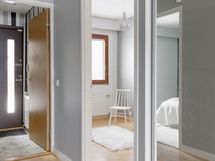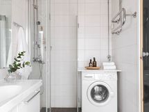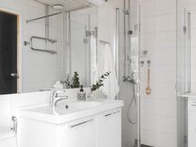 - Pesutilojen varusteet: WC-istuin, suihku, suihkuseinä, pesukoneliitäntä, pesuallas, allaskaappi, bidee-suihku ja peili. Pesutilojen kuvaus: uusittu 2019 taloyhtiön toimesta.