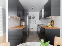 - Keittiön varusteet: Jääkaappipakastin, erillisuuni ja astianpesukone. Työtason materiaali: Puu. Keittiö uusittu 2016, lattia keraaminen lankku ja lattialla lattialämmitys.