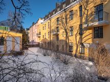 - Läpitalon asunnosta kauniit näkymät Huvilakadulle ja taloyhtiön Huvilakujalle päin länteen avautuvalle sisäpihalle.