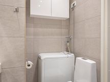 - Pesutilojen varusteet: WC-istuin, suihku, suihkuseinä, peilikaappi, allaskaappi, pyyhepatteri, pesukoneliitäntä ja lattialämmitys.