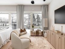 - Muuta kauppaan kuuluvaa: Kiinteät valaisimet, sälekaihtimet, keskuspölynilmuri, biotakka, integroitu ilmalämpöpumppu, valvontajärjestelmä (oma sopimus tehtävä).