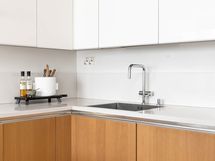 - Liesi: keraaminen, erillisuuni. Työtasot: kivi. Kylmäsäilytys: jääkaappi/pakastin. Varustus: liesituuletin, mikroaaltouuni, astianpesukone. Laadukas, italialainen Snadeiro-keittiö (Orizzonte). Kodinkoneet Gaggenaun. Laatta lattia, seinät maalattu (koristelaastattu).