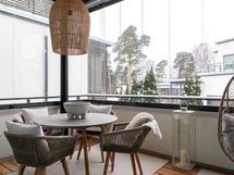 - Kolme parveketta, joista sisääntulokerroksen parveke on lasitettu. Parvekkeiden suunta itään ja länteen.